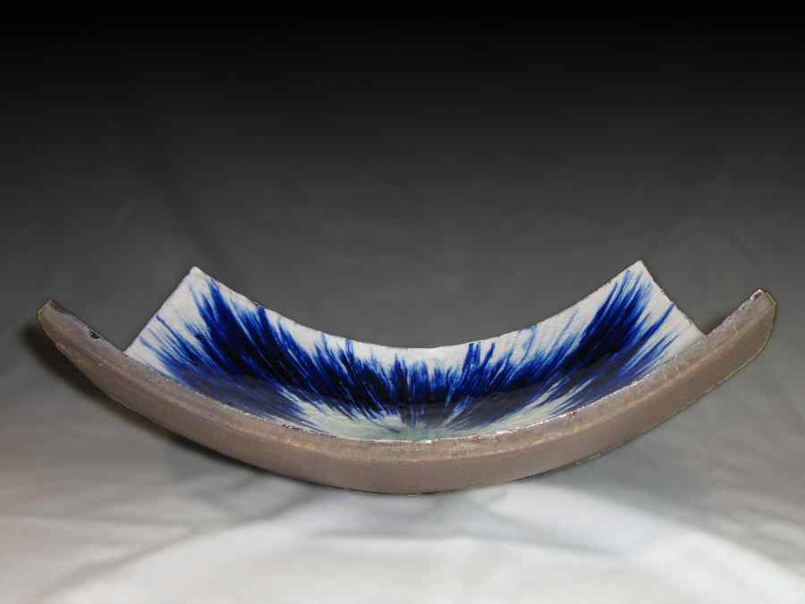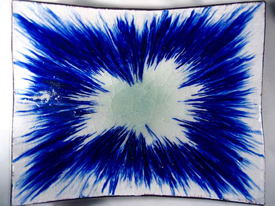 Fuente cóncava rectangular de barro refractario, cubierta porcelana, vidrio y óxido de cobalto