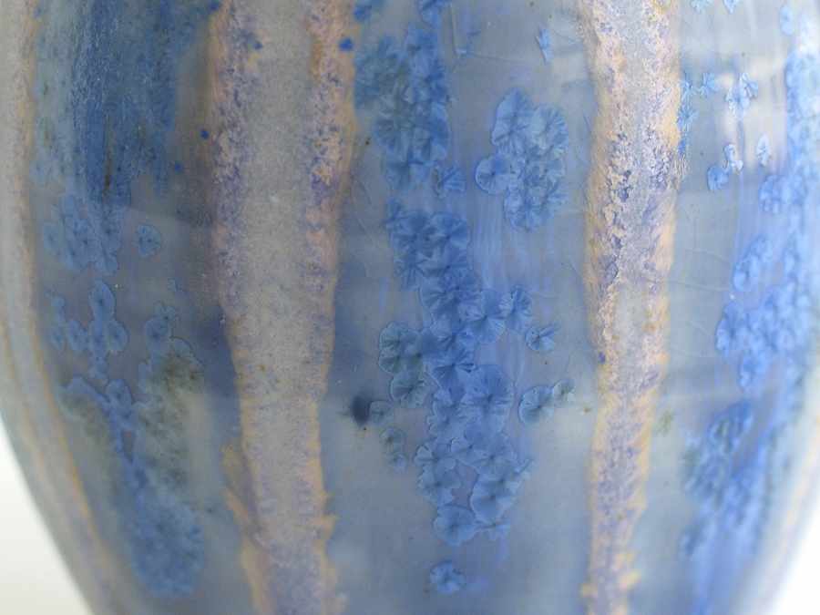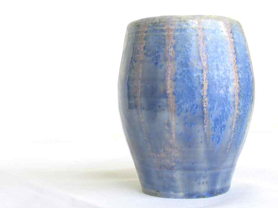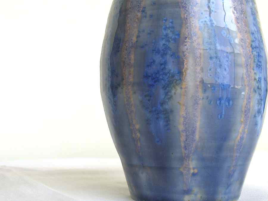 Jarroncito de porcelana hecho al torno, cubierta esmaltes Blue stone y White Glass 1280º