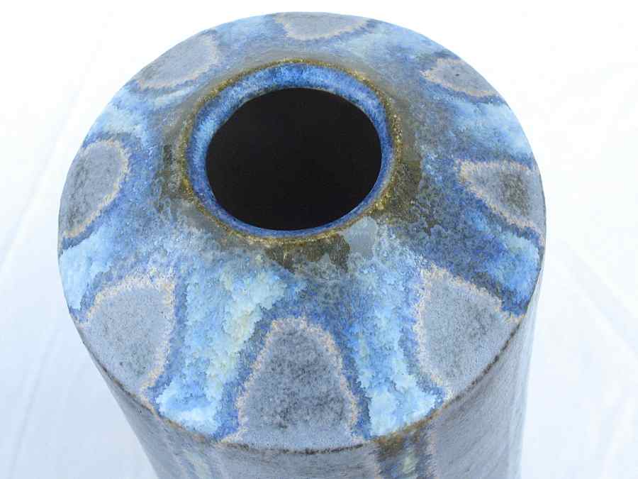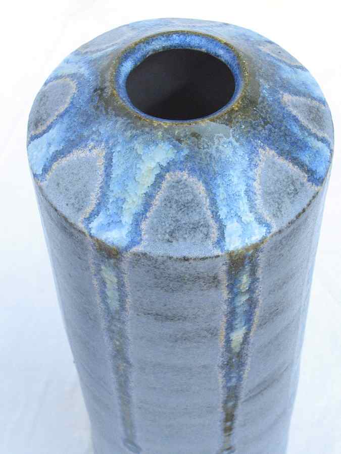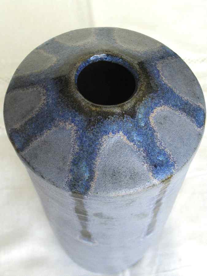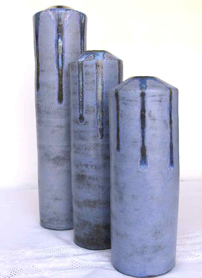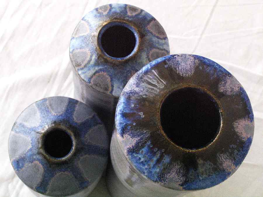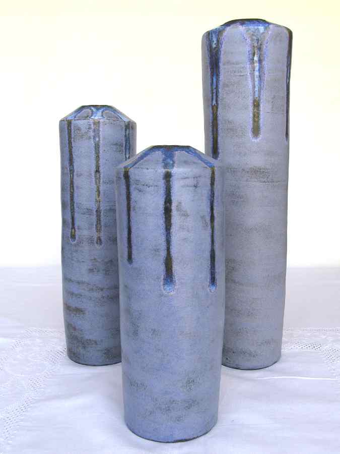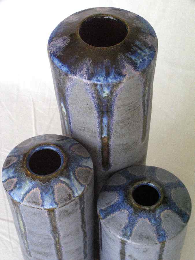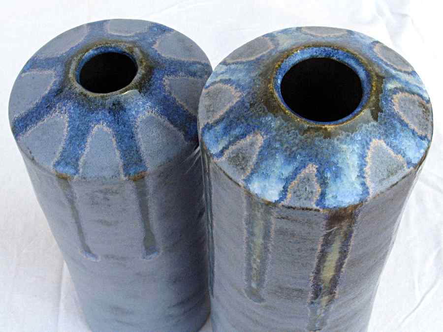 Jarrones de barro refractario modelados a torno con planchas, esmaltes Blue stone y White Glass 1280º